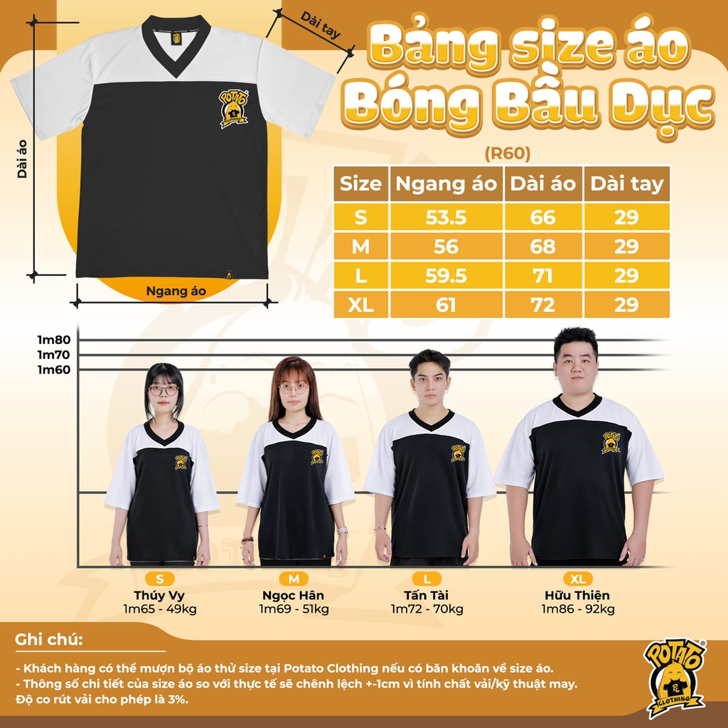Áo bóng bầu dục là sự kết hợp hoàn hảo giữa thể thao và thời trang. Với thiết kế trẻ trung, áo bóng bầu dục Potato giúp thể hiện tinh thần tập thể, tạo nên sự đồng điệu trong từng hoạt động nhóm, mà vẫn có dấu ấn cá nhân của từng thành viên.