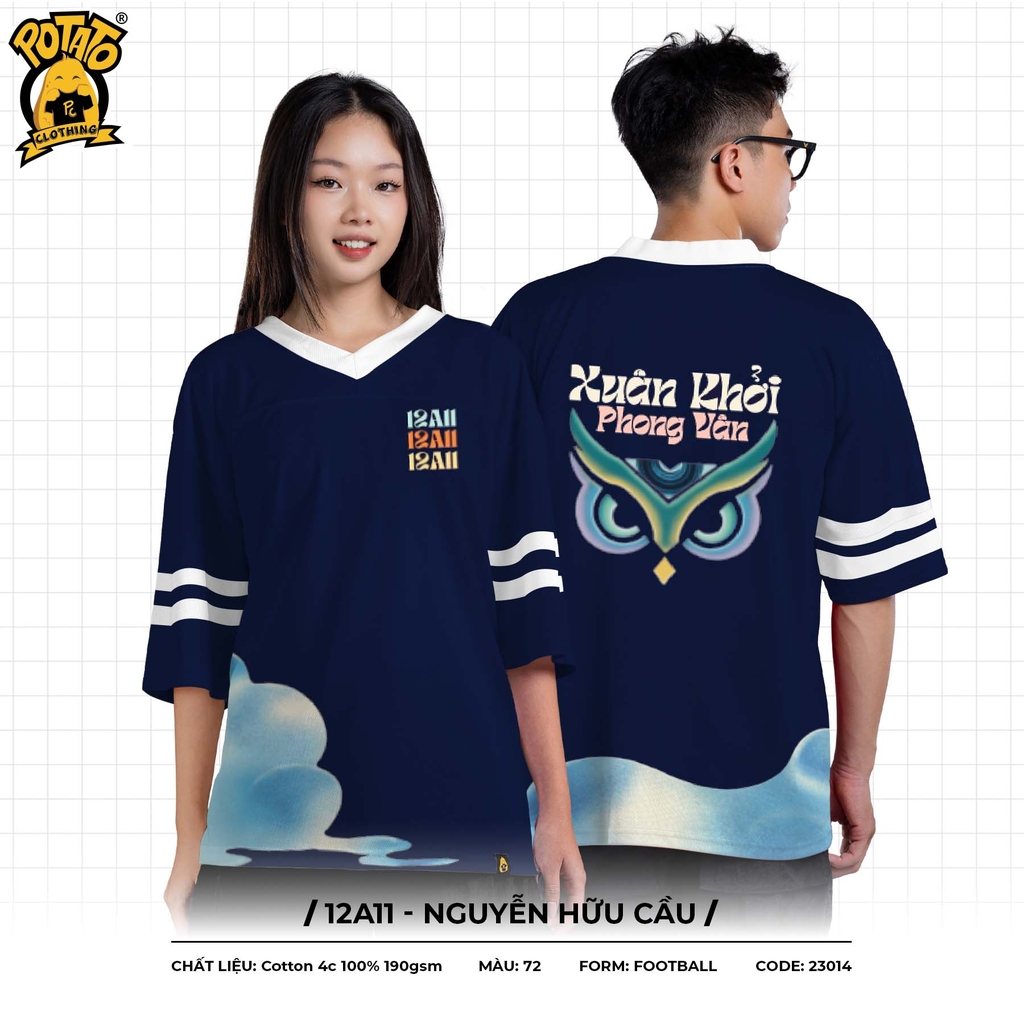 Áo lớp bóng bầu dục là sự kết hợp hoàn hảo giữa thể thao và thời trang. Với thiết kế trẻ trung, áo bóng bầu dục Potato giúp thể hiện tinh thần tập thể, tạo nên sự đồng điệu trong từng hoạt động nhóm, mà vẫn có dấu ấn cá nhân của từng thành viên.