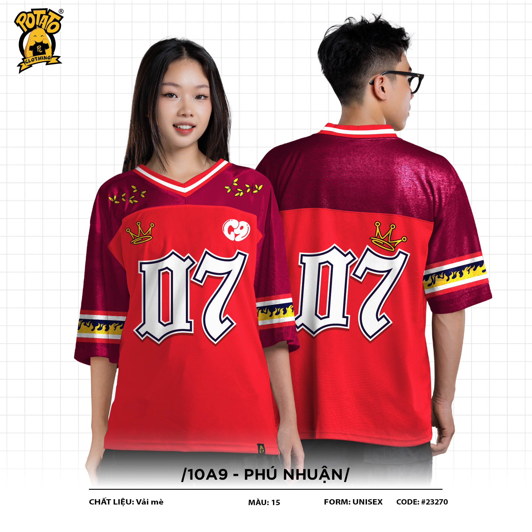 Áo lớp bóng bầu dục là sự kết hợp hoàn hảo giữa thể thao và thời trang. Với thiết kế trẻ trung, áo bóng bầu dục Potato giúp thể hiện tinh thần tập thể, tạo nên sự đồng điệu trong từng hoạt động nhóm, mà vẫn có dấu ấn cá nhân của từng thành viên.