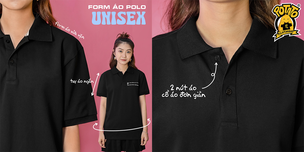 Giống như tên gọi của mình, form áo Polo Unisex tại Potato Clothing phù hợp cho cả nam và nữ. Với dáng áo suông, tay áo ngắn, tỉ lệ hài hòa giữa chiều dài và chiều rộng, áo thun Unisex phù hợp với mọi lứa tuổi.