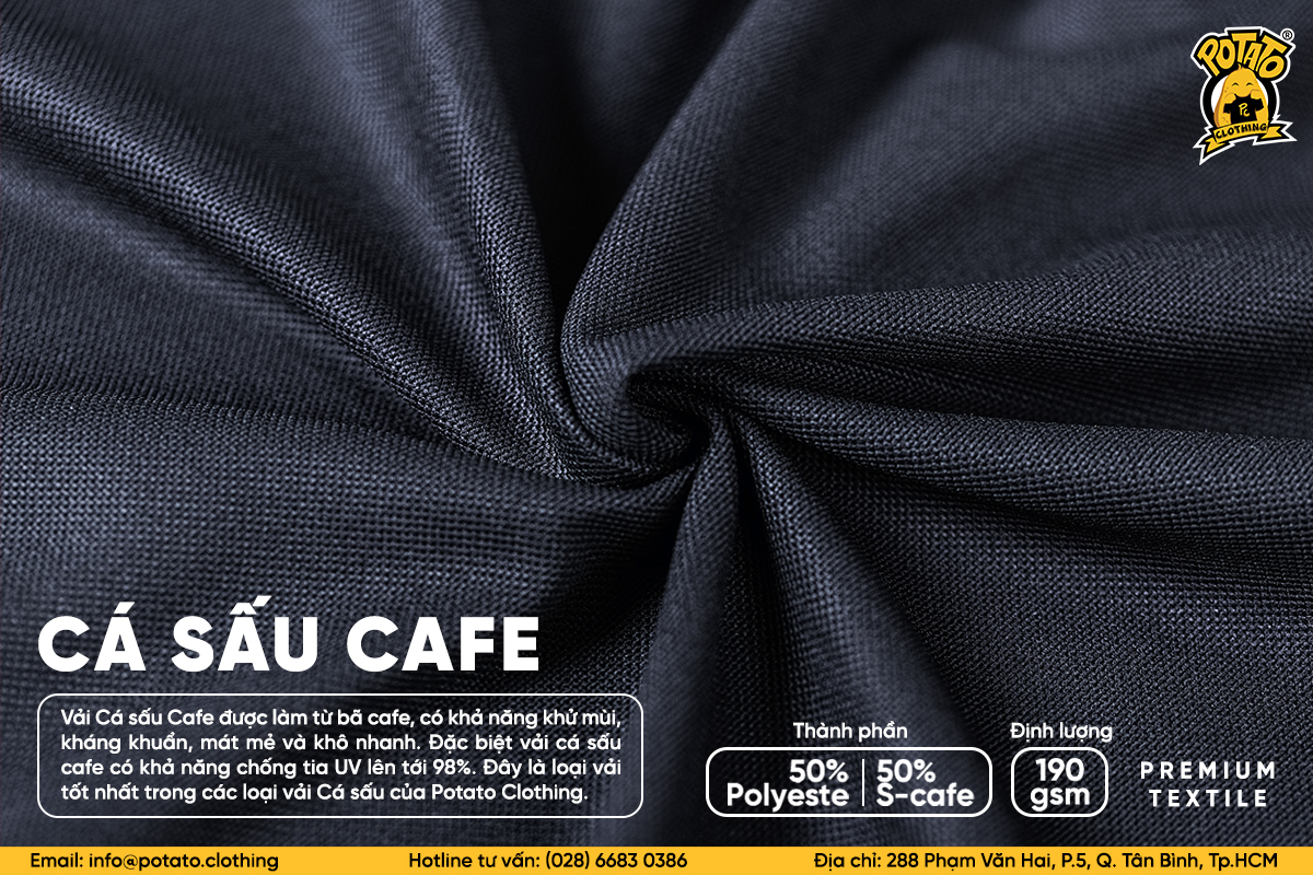 Có 3 loại vải cá sấu được các công ty ưa chuộng nhất ở Potato là: cá sấu 100% Cotton, cá sấu 65% cotton và cá sấu poly. Ngoài ra Potato Clothing mới có thêm một loại vải cá sấu cực chất lượng là vải Cá sấu cafe (bạn có thể tham khảo thêm thông tin loại vải tại đây)
