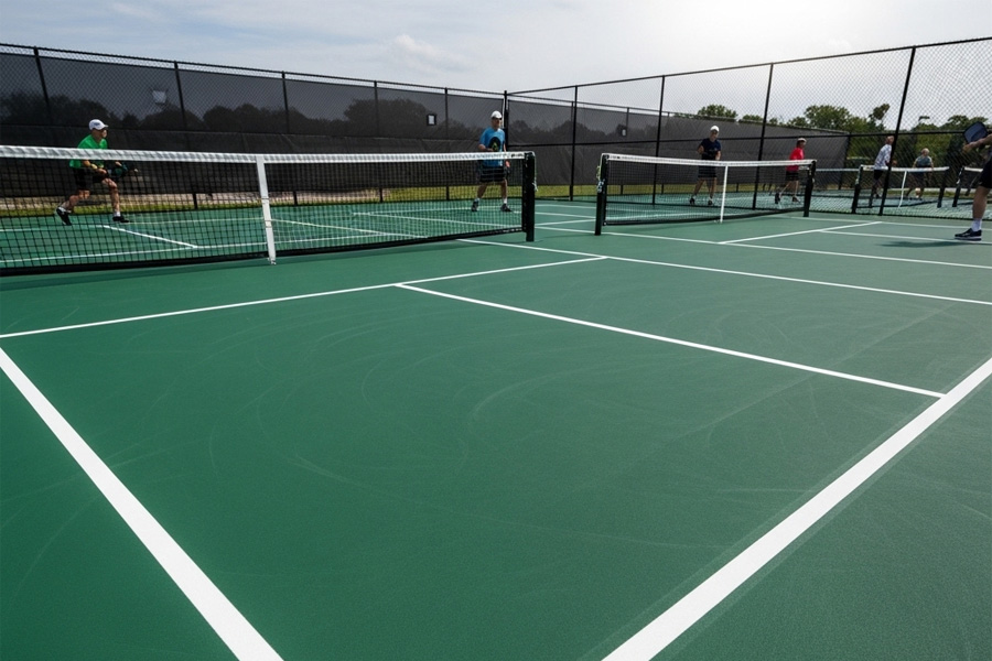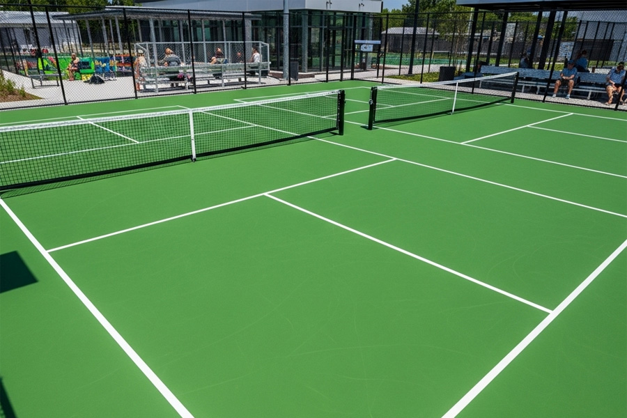 Sân pickleball nhựa acrylic phù hợp với sân thi đấu chính thức, sân câu lạc bộ, sân đào tạo.