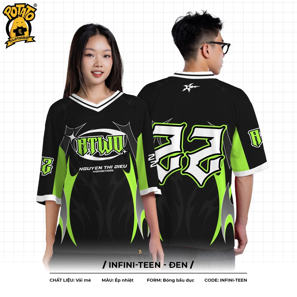 BST áo lớp Infini-teen gây ấn tượng với phong cách bóng bầu dục khỏe khoắn, thiết kế hiện đại cùng bảng màu nổi bật, dành cho những tập thể lớp yêu thích sự năng động và khác biệt. Không chỉ là trang phục, áo  Infini-teen còn lan tỏa tinh thần đoàn kết, tiếp thêm năng lượng để mỗi lớp tự tin bứt phá