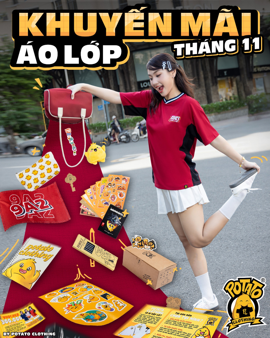 Nhân dịp tháng tri ân Nhà giáo Việt Nam 20/11, Potato Clothing triển khai chương trình khuyến mãi lớn dành cho các tập thể đặt áo lớp Cooline trong thời gian này: