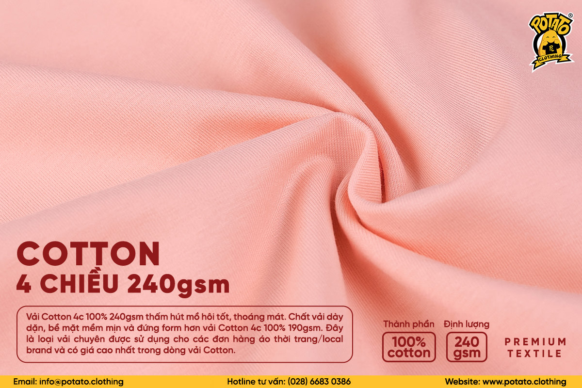 Xem hình ảnh màu vải Cotton 4c 100% Premium 240gsm thực tế tại đây