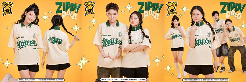 Một trong những yếu tố khiến bộ sưu tập này trở thành "best-seller" chính là phong cách may Kansai ngược - một xu hướng đang rất được ưa chuộng bởi các local brand hiện nay. Chi tiết vắt sổ không chỉ là một phần của cấu trúc áo mà còn là điểm nhấn trang trí nổi bật, giúp các mẫu áo lớp polo, áo lớp cổ zip, hay áo lớp phối màu của Potato Clothing trở nên khác biệt.