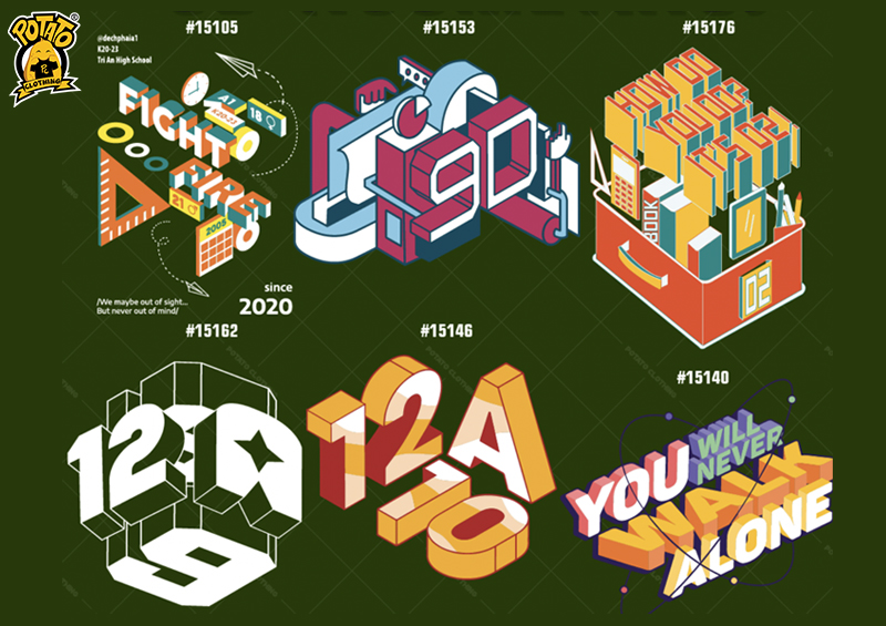 Thiết kế logo in 3D cho áo lớp mang lại sự nổi bật và ấn tượng mạnh mẽ. Bạn có thể tham khảo các mẫu logo 3D mà Potato đã thiết kế tại đây. Việc sử dụng kỹ thuật phối màu và đổ bóng vừa tạo hiệu ứng chiều sâu vừa làm cho hình ảnh sống động và chân thực hơn.