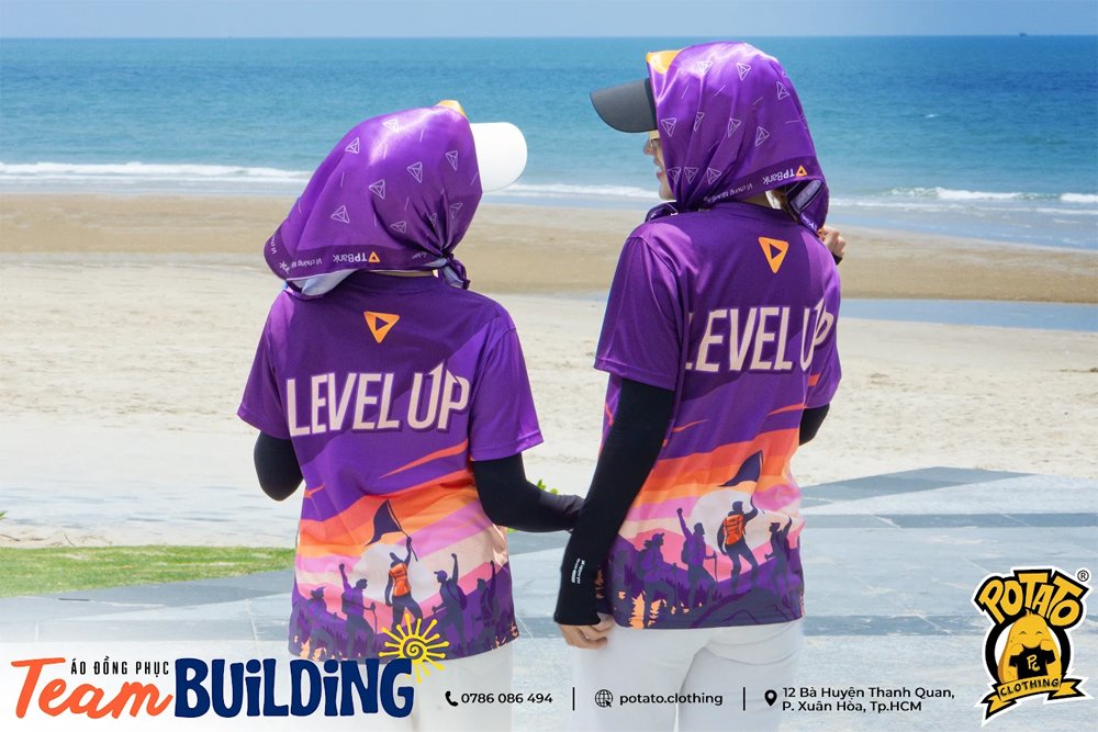 Sự khác biệt của đồng phục team building nằm ở khả năng truyền tải giá trị cốt lõi thông qua slogan và logo. Potato Clothing áp dụng các kỹ thuật in kỹ thuật số và in chuyển nhiệt cao cấp, đảm bảo tính chính xác về màu sắc và độ sắc nét của họa tiết trên áo.