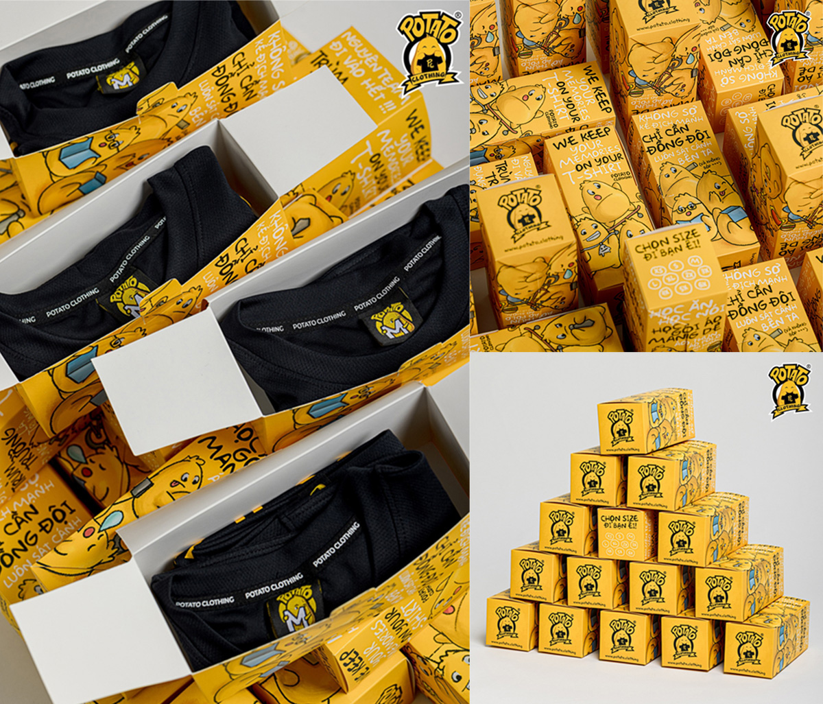Không chỉ tập trung vào sản phẩm, Potato Clothing còn chăm chút về khâu đóng gói. Sử dụng hộp áo dễ thương, thay đổi theo từng mùa, chúng tôi muốn đem lại cho khách hàng cả áo đẹp và cả những niềm vui nhỏ khi có áo mới trên tay.