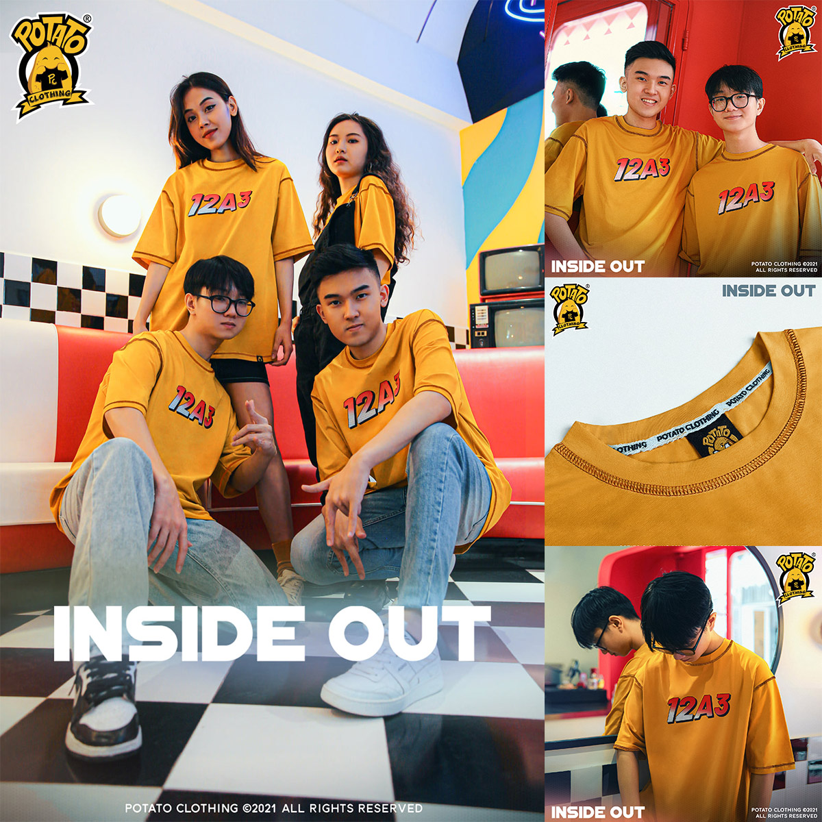 Inside Out - cái tên nghe khá quen thuộc với các bạn trẻ qua bộ phim hoạt hình nổi tiếng kể về những mảnh ghép cảm xúc bên trong mỗi người. Lấy cảm hứng từ bộ phim này, Potato Clothing đã thiết kế kiểu may đưa những đường vắt sổ ra bên ngoài như một chi tiết trang trí cho áo lớp.