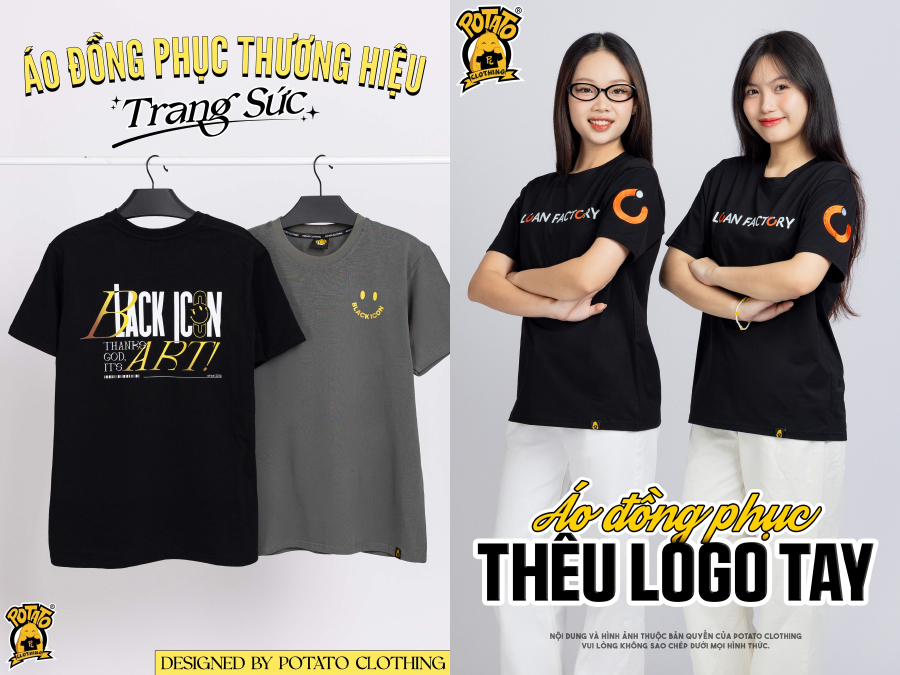 - Phối màu và in logo theo yêu cầu: Potato Clothing hỗ trợ in hoặc thêu logo của doanh nghiệp miễn phí.