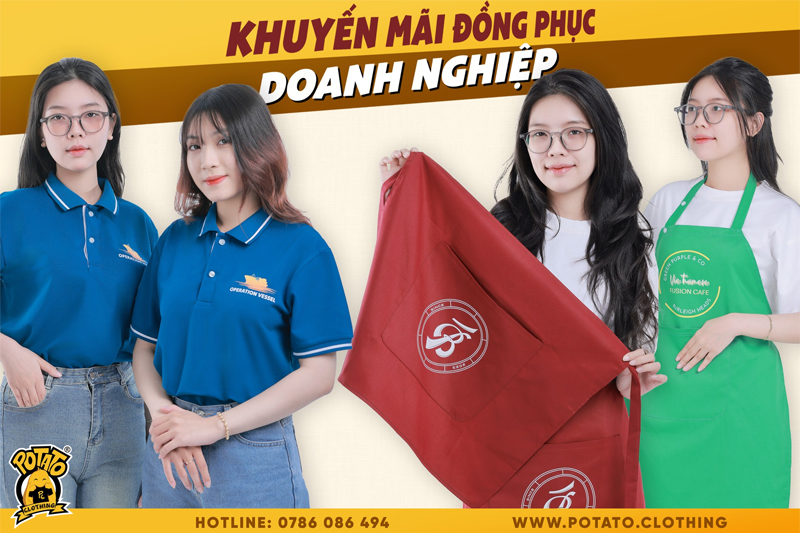 Bạn muốn rinh ngay cho công ty mình Combo “siêu to khổng lồ” áo đồng phục kèm dây đeo, tạp dề hoặc nón? Còn chần chờ gì nữa mà hãy ghé Potato Clothing để săn ngay combo khuyến mãi siêu hời nhé!