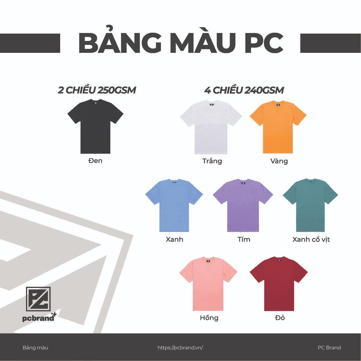Bên cạnh đó, PC Brand còn có loại vải 100% Cotton 2 chiều 250gsm cho dòng áo thun đen. Với định lượng dày hơn và chất liệu co giãn 2 chiều,áo cực kỳ dày dặn và đứng form cho những khách hàng quan tâm đến 2 yếu tố này.