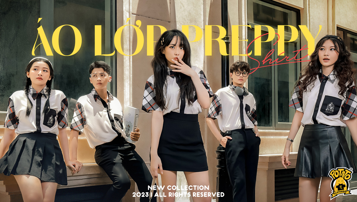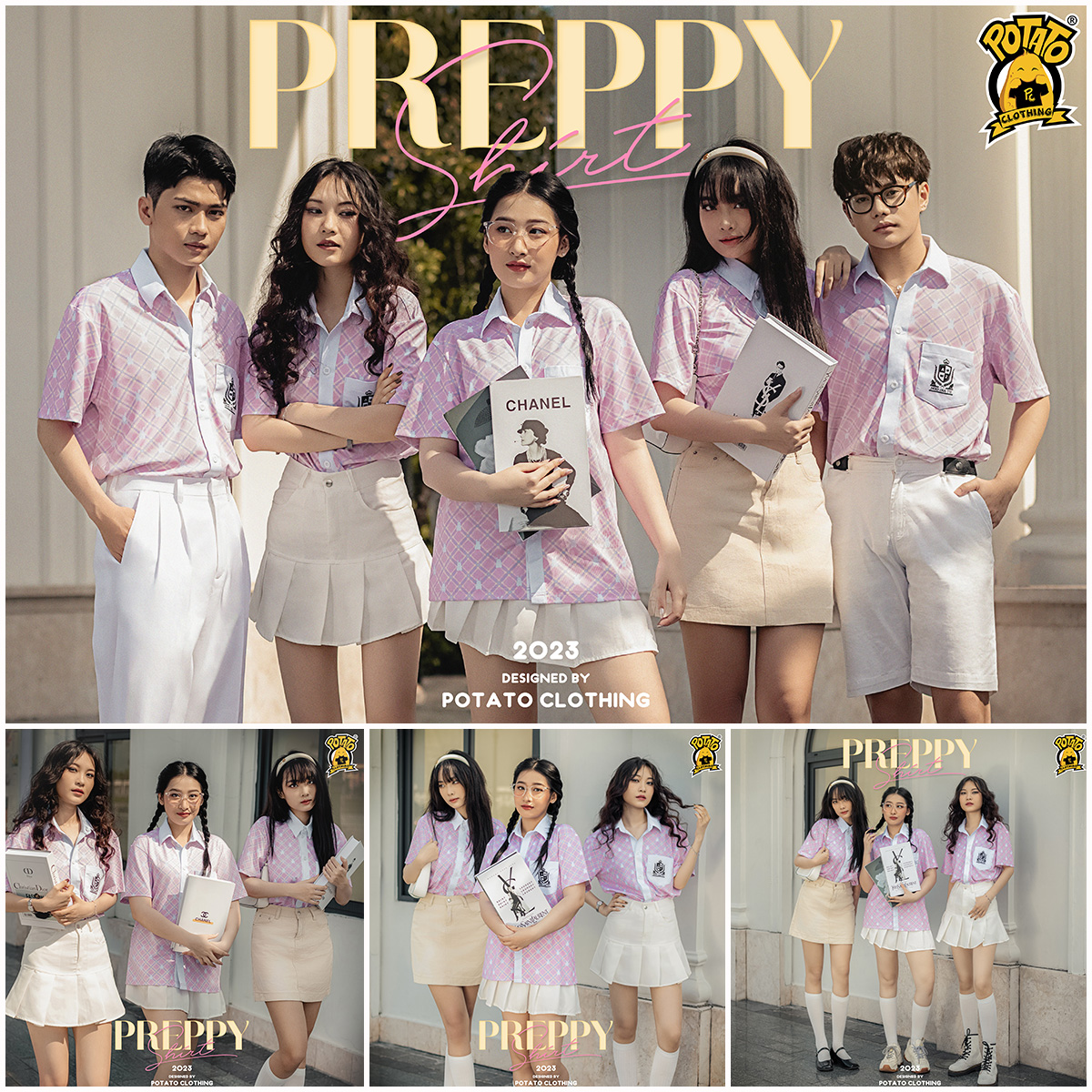 Preppy style là phong cách được lấy cảm hứng từ những bộ đồng phục thanh lịch, sang trọng của các trường đại học ở Bắc Mỹ vào thế kỷ trước. Bộ trang phục học sinh với thiết kế họa tiết kẻ sọc đặc trưng cùng kiểu dáng trẻ trung, đầy năng lượng là nguồn cảm hứng cho Bộ sưu tập Áo lớp Preppy Shirt của Potato Clothing.