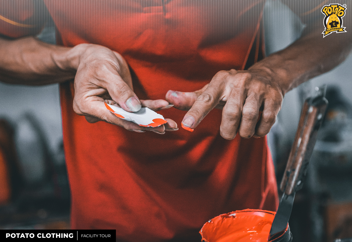 Pha màu mực là một công đoạn rất quan trọng để thể hiện chính xác thiết kế trên áo. Đây là công đoạn nhiều tâm huyết đối với thợ in tại Potato Clothing, mực in kéo lụa sẽ được pha với chất lượng tốt nhất và quan trọng là màu sắc phải thật chuẩn.