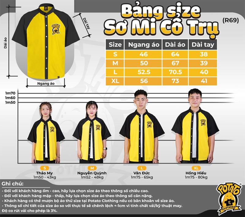 Tham khảo bảng size các sản phẩm áo đồng phục của Potato tại đây!
