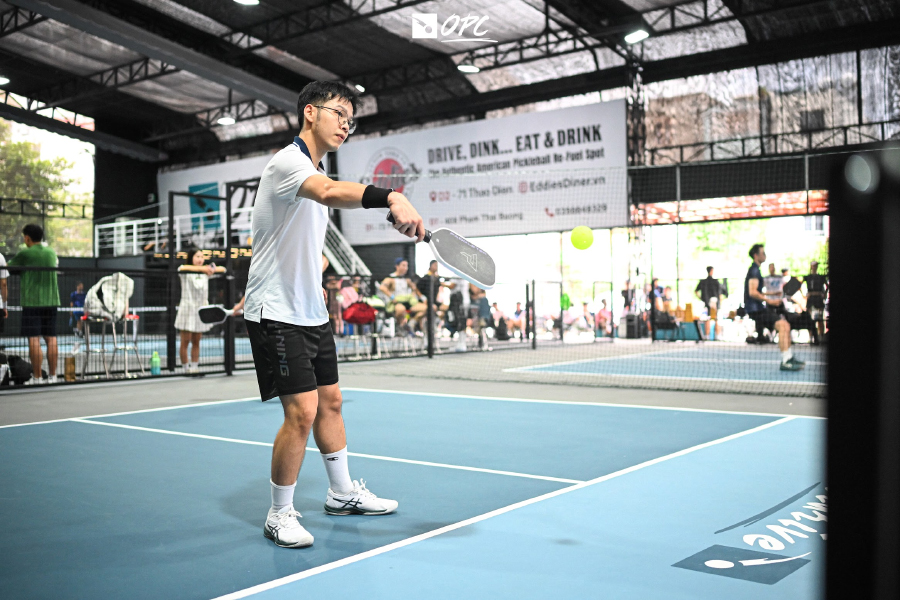 Sân pickleball OPC sở hữu mặt sân đạt chuẩn thi đấu và có mái che trong nhà