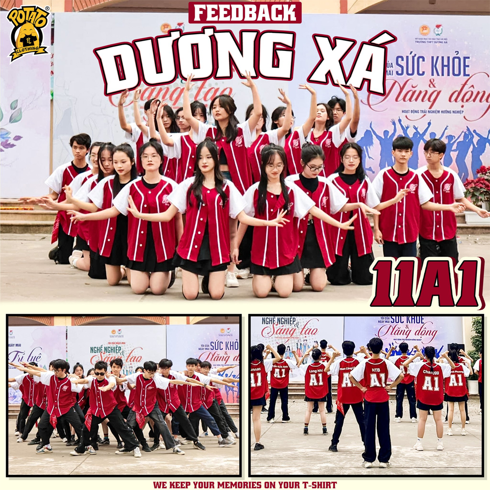Cùng ngắm nhìn vẻ ngoài rực rỡ của các tập thể lớp trong mẫu áo bóng chày đỏ trơn từ Potato Clothing. Qua những khung hình thực tế, sắc đỏ này luôn giúp các bạn thu hút mọi ánh nhìn, mang lại sự tự tin dù là khi biểu diễn trên sân khấu hay lúc chụp ảnh lớp cùng nhau.