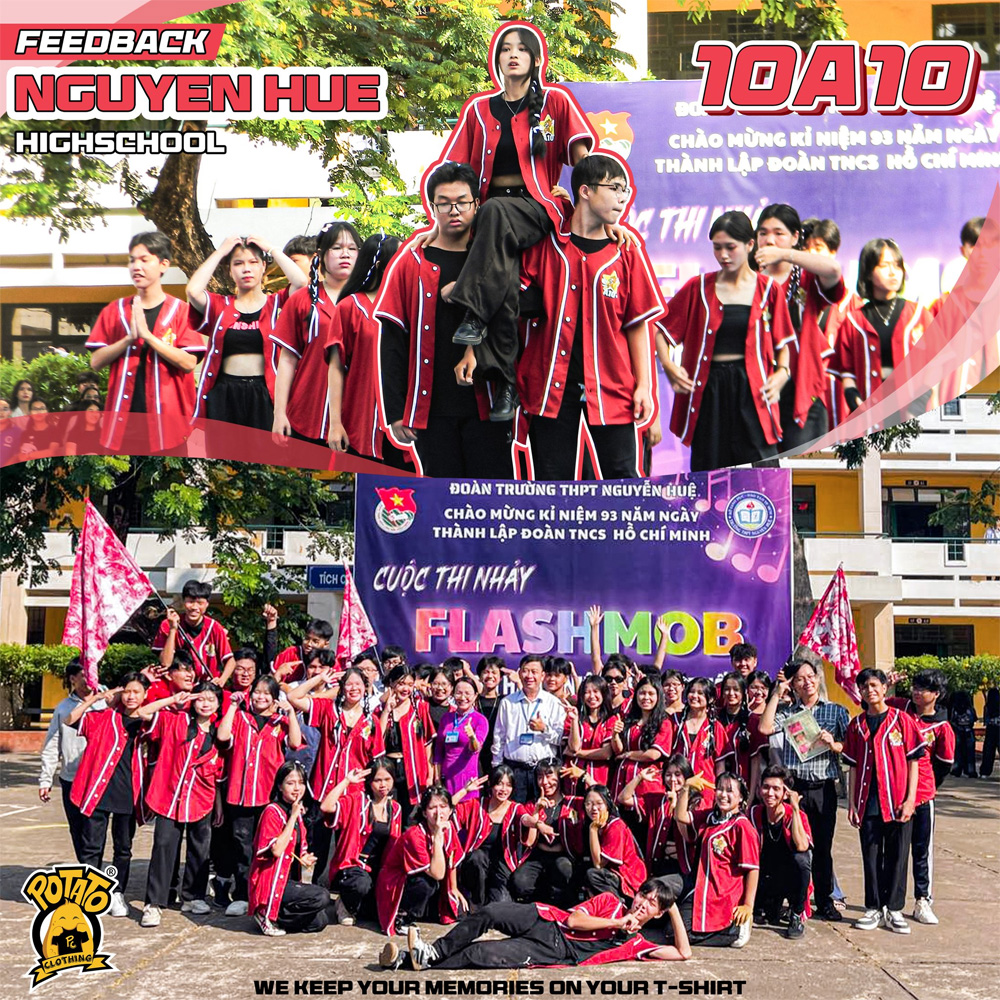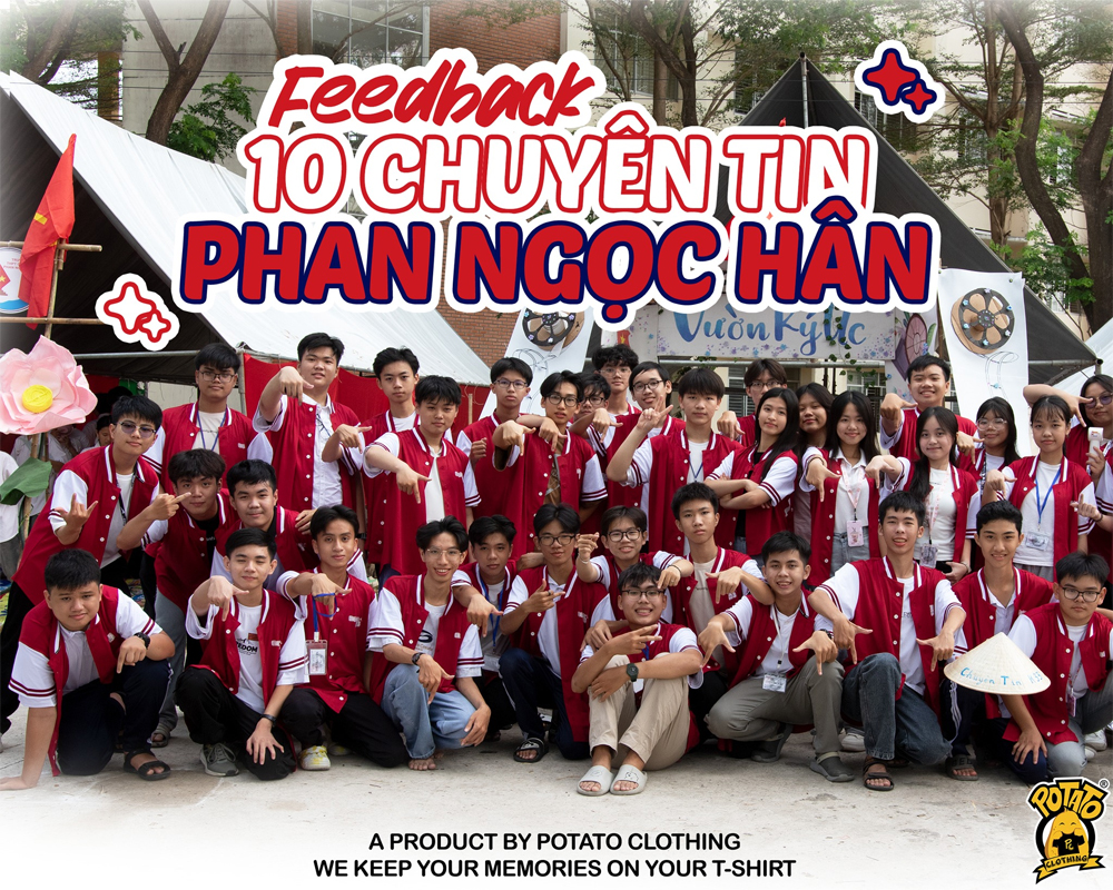 Điểm cộng lớn nhất nằm ở chất liệu vải mè siêu cấp thoáng khí, giúp các bạn thoải mái vận động suốt cả ngày dài. Từng chi tiết hình in đều được Potato thiết kế riêng biệt, đảm bảo độ sắc nét và mang đậm dấu ấn cá nhân của lớp mình mà không lo "đụng hàng".