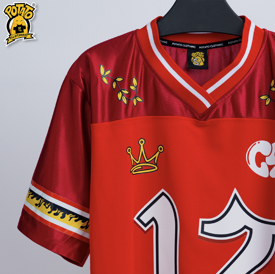 Áo cổ tim được ứng dụng phổ biến trên áo thun và áo bóng bầu dục tại Potato