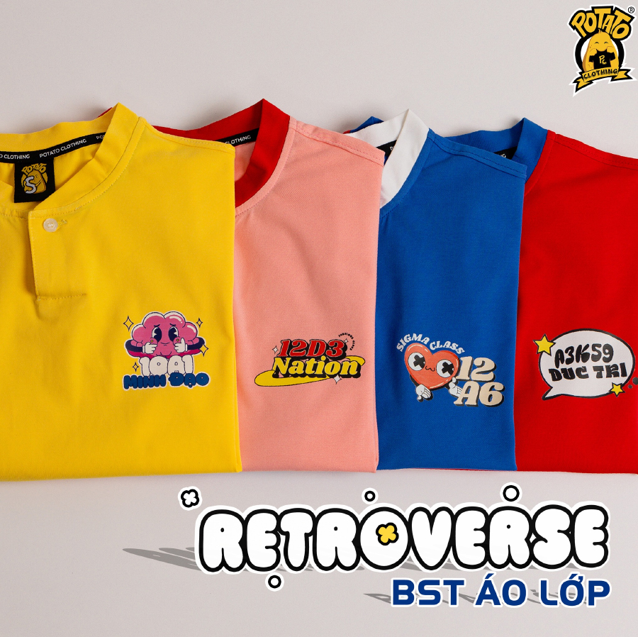 Tại Potato, kiểu áo này được ứng dụng trong BST áo Lớp Retroverse, mang đến sự kết hợp hài hòa giữa phong cách cổ điển và hiện đại, phù hợp cho các hoạt động nhóm, đồng phục lớp hay những dịp tụ họp, tạo nên phong cách năng động và cá tính.