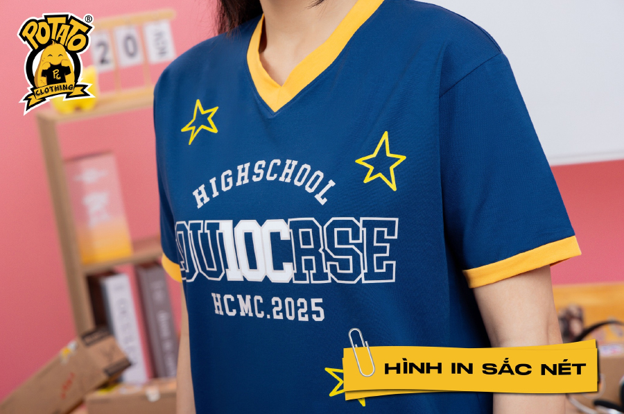 Áo cổ vest tại Potato được ứng dụng để may áo lớp hoặc đồng phục team building
