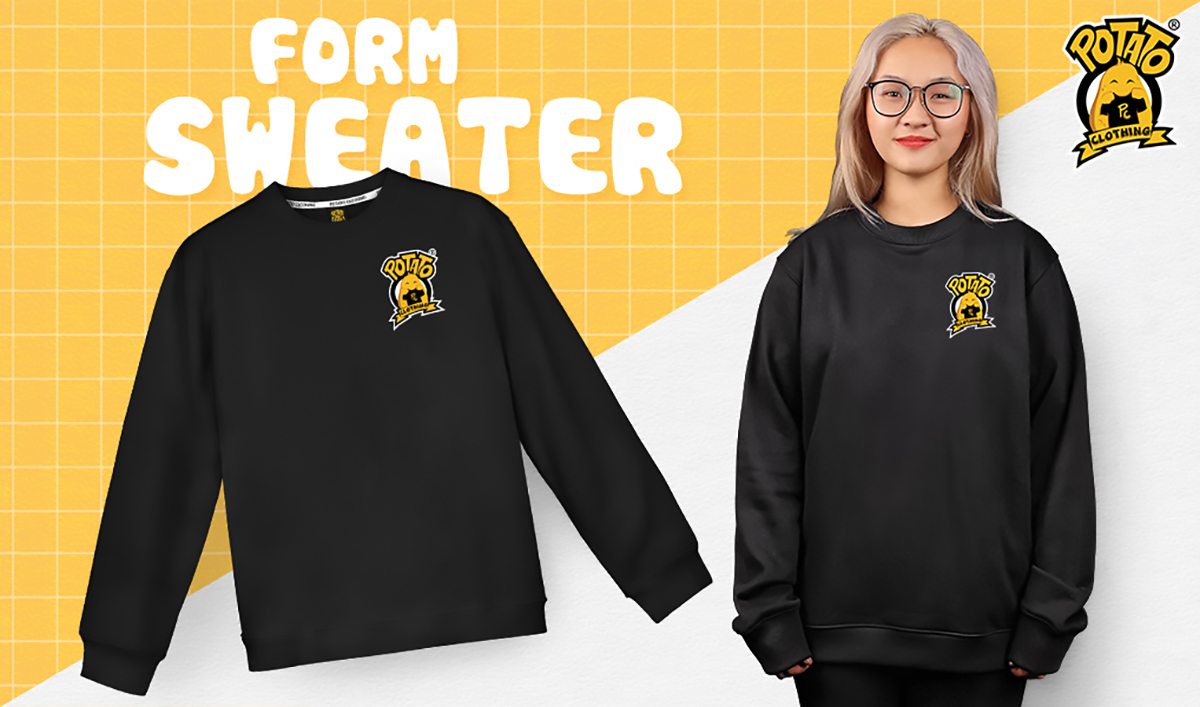 Áo Sweater cũng là kiểu áo đặc trưng tại Potato Clothing. Đây là kiểu áo dài tay, không có mũ trùm hay túi áo. Sweater tuy có thiết kế đơn giản, nhưng rất được giới trẻ ưa chuộng. Đó là bởi vì Sweater là kiểu áo có thể biến hoá thành nhiều phong cách khác nhau, từ streetwear đến bánh bèo, tối giản,…