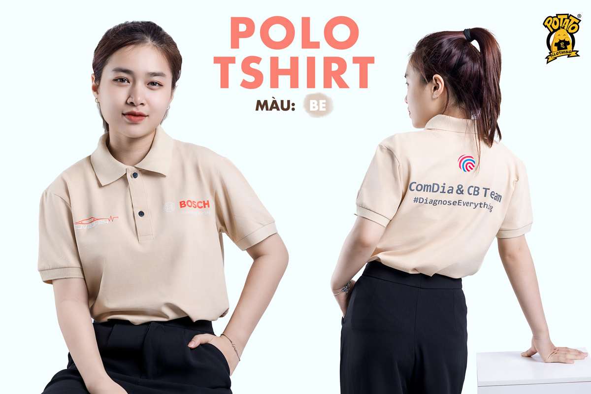 Vải cá sấu 100% cotton màu be cực kì tôn da, kết hợp họa tiết in trước ngực và lưng tạo cho chiếc áo thêm chuyên nghiệp. Tay áo bo thun, không bị gò bó tạo cảm giác thoải mái khi vận động.