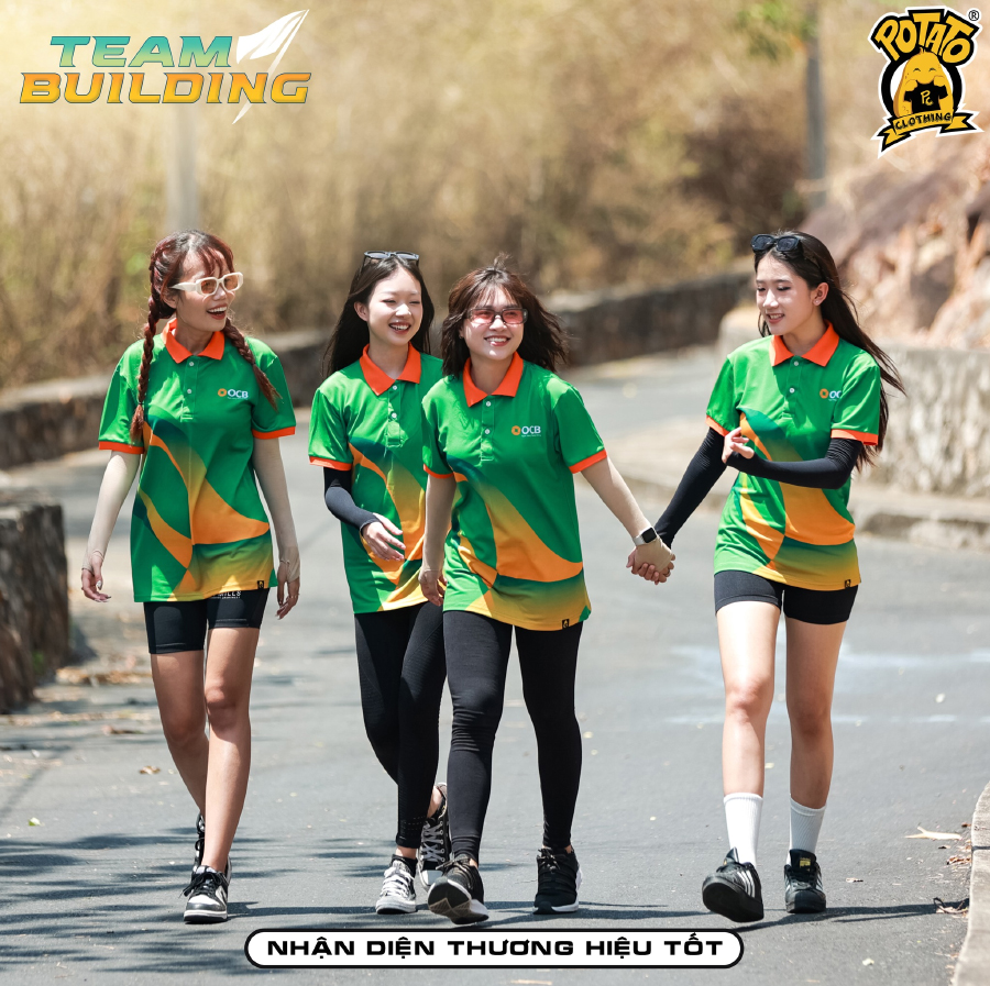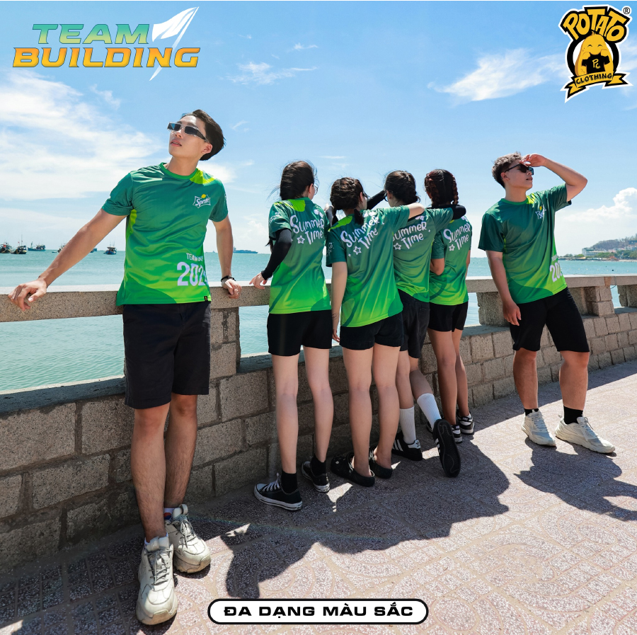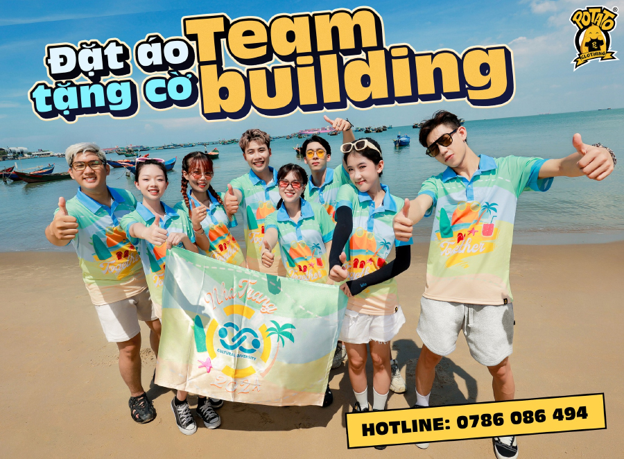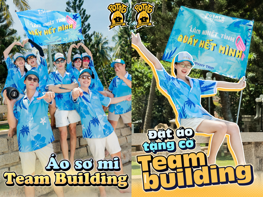 Bên cạnh đó, Potato còn hỗ trợ thiết kế miễn phí cho đơn từ 21 áo theo màu thương hiệu, in logo – slogan rõ nét, phối màu hiện đại và tặng kèm cờ công ty đồng bộ giúp đội ngũ nổi bật trong mọi khung hình tập thể. Đồng phục team building không chỉ tạo sự chuyên nghiệp mà còn giúp lan tỏa văn hóa doanh nghiệp trong mỗi hoạt động chung.
