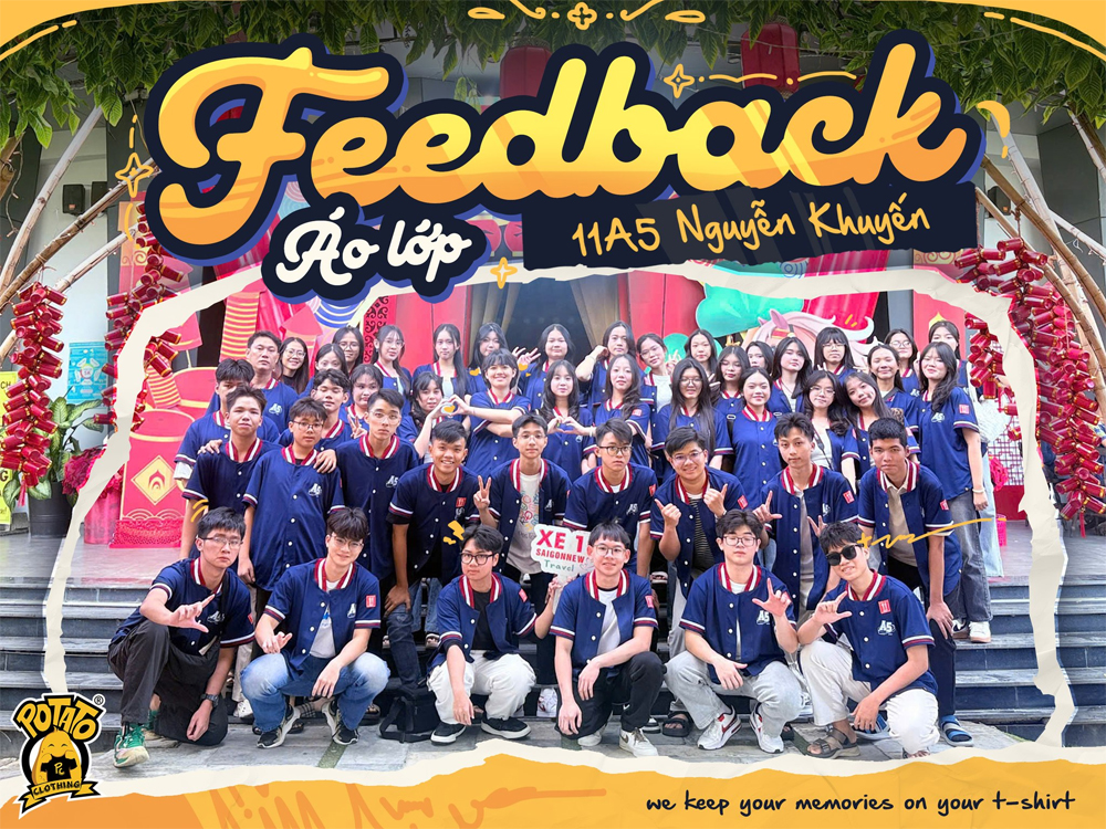 Feedback áo lớp bóng chày xanh dương bo cổ đỏ từ các bạn 11A5 THPT Nguyễn Khuyến