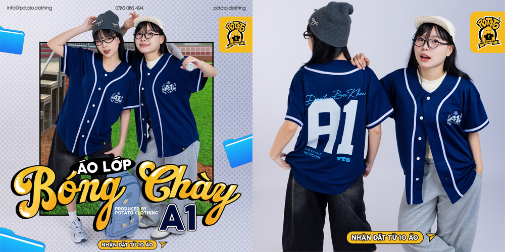 Áo lớp bóng chày xanh dương là lựa chọn hoàn hảo cho phong cách học đường thanh lịch nhưng không kém phần năng động. Cùng Potato điểm qua các mẫu áo lớp bóng chày xanh dương cực chất để lớp mình dễ dàng chọn được thiết kế ưng ý nhất nhé!