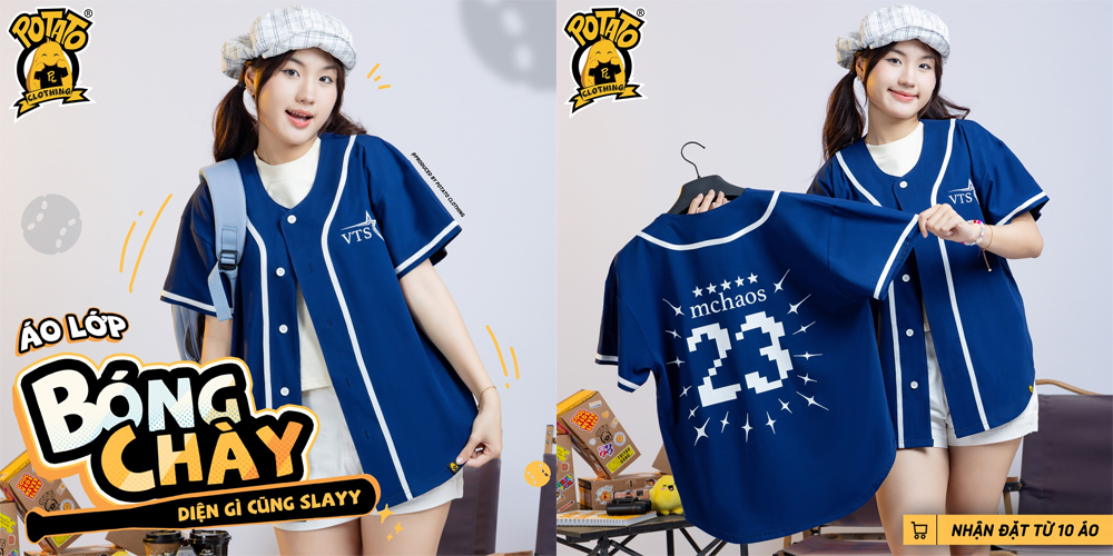 Top 10+ mẫu áo lớp bóng chày màu xanh dương cực chất tại Potato