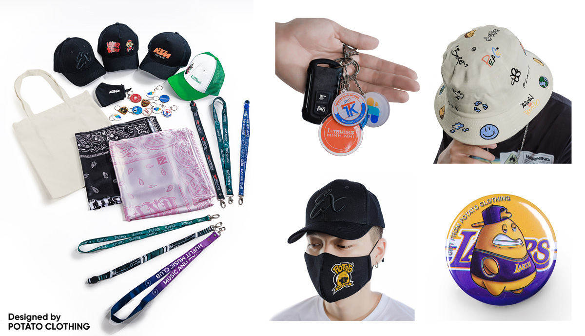 Bên cạnh đồng phục và áo lớp, Potato Clothing tự hào mang đến một loạt phụ kiện và quà tặng độc đáo, bao gồm: nón đồng phục, dây đeo, túi tote, huy hiệu, cờ lớp, khẩu trang, móc khóa, sổ tay, túi đóng gói, tạp dề, vớ, bút chì, bút bi, nhãn mác đóng gói, nút áo, khăn bandana... và nhiều hơn nữa. Cùng khám phá từng món phụ kiện của Potato qua bài viết dưới đây nhé!