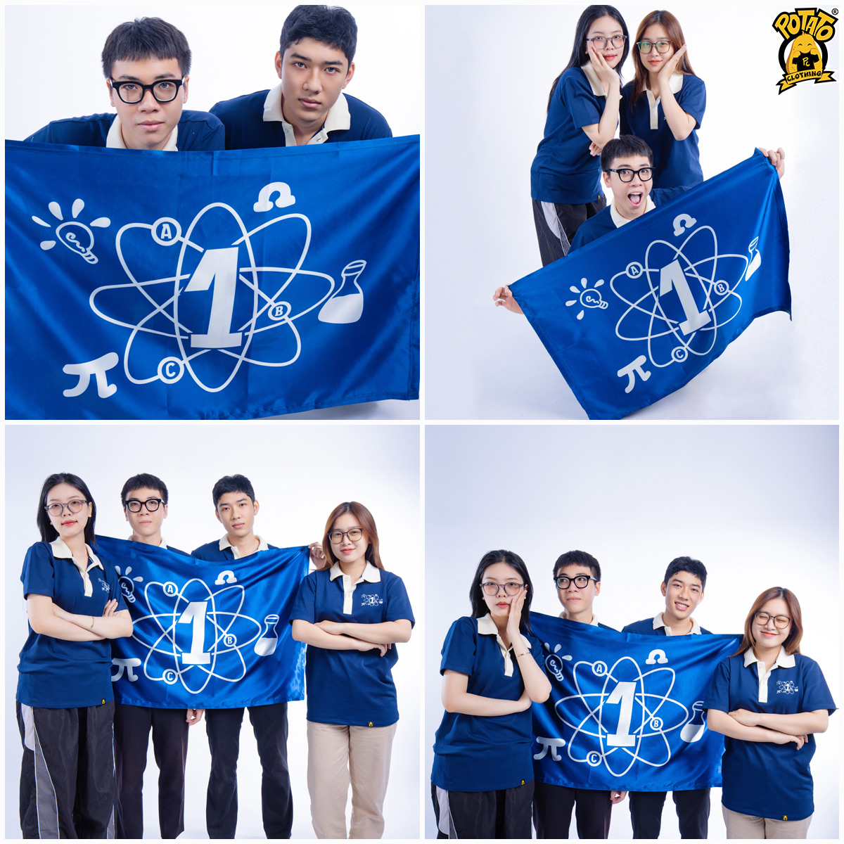 Cờ lớp thường được sử dụng trong các dịp hội trại, dã ngoại, chụp kỷ yếu. Đây được xem như biểu tượng để khắc ghi logo, những đặc trưng, hình ảnh và slogan của một tập thể lớp. Ở Potato Clothing, cờ được làm từ chất liệu vải phi bóng cao cấp, kích thước 100*70cm. Cờ được in bằng công nghệ in chuyển nhiệt, không giới hạn màu sắc, đảm bảo hình in được sắc nét và bền màu theo thời gian.