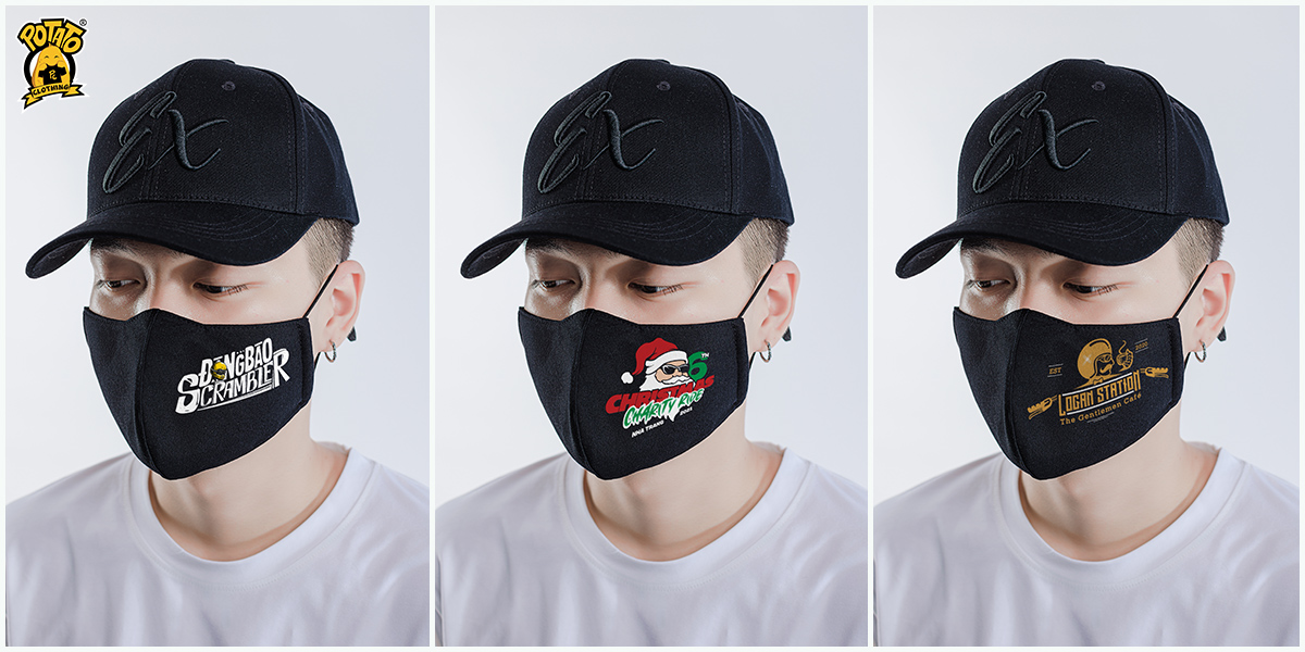 Potato Clothing dùng vải Kate và Poly để làm khẩu trang. Khẩu trang Potato không gây kích ứng và an toàn cho da với đa dạng màu sắc, hình in theo ý thích của mọi người.