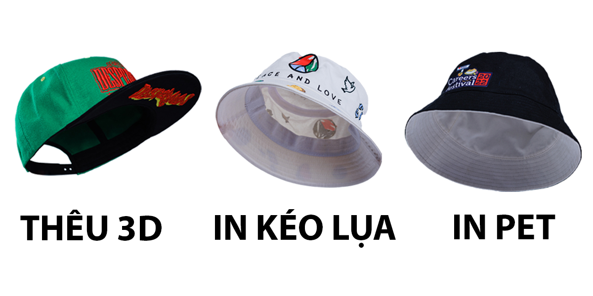 Đối với các logo trên nón, Potato sử dụng nhiều công nghệ như: in lụa, in decal, in PET, thêu 2D, thêu 3D… giúp bạn có nhiều sự lựa chọn hơn trong việc in ấn.