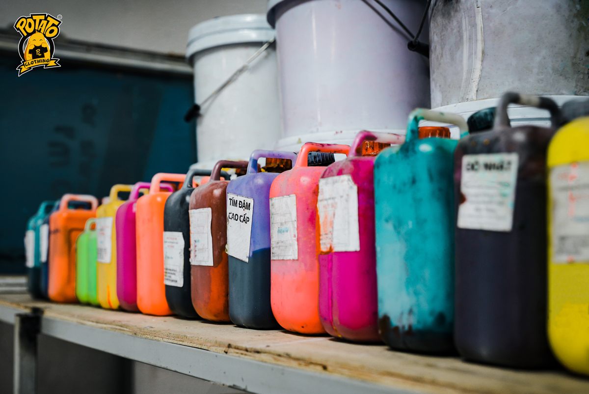 Cận cảnh pha mực in kéo lụa tại Potato Clothing